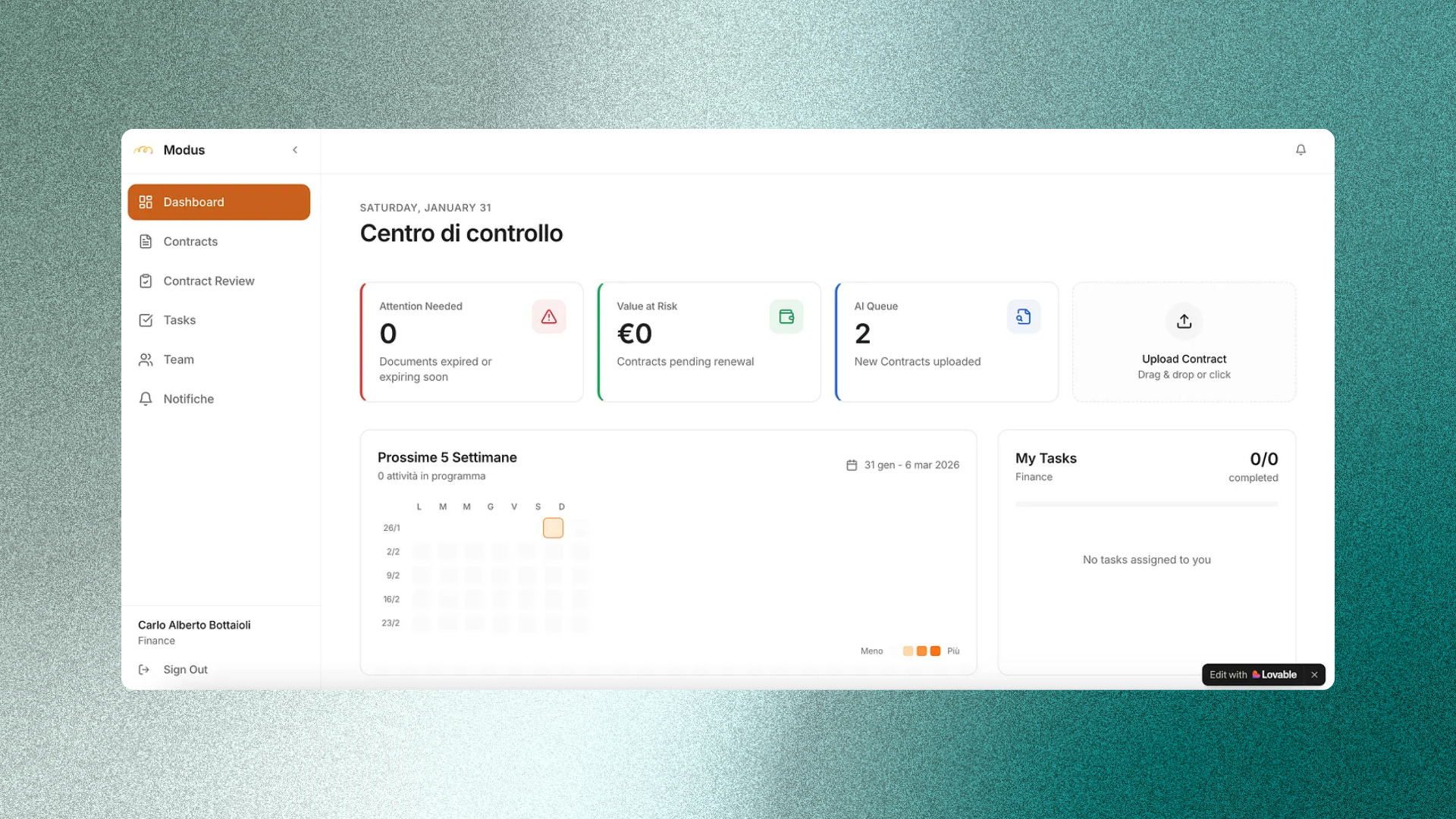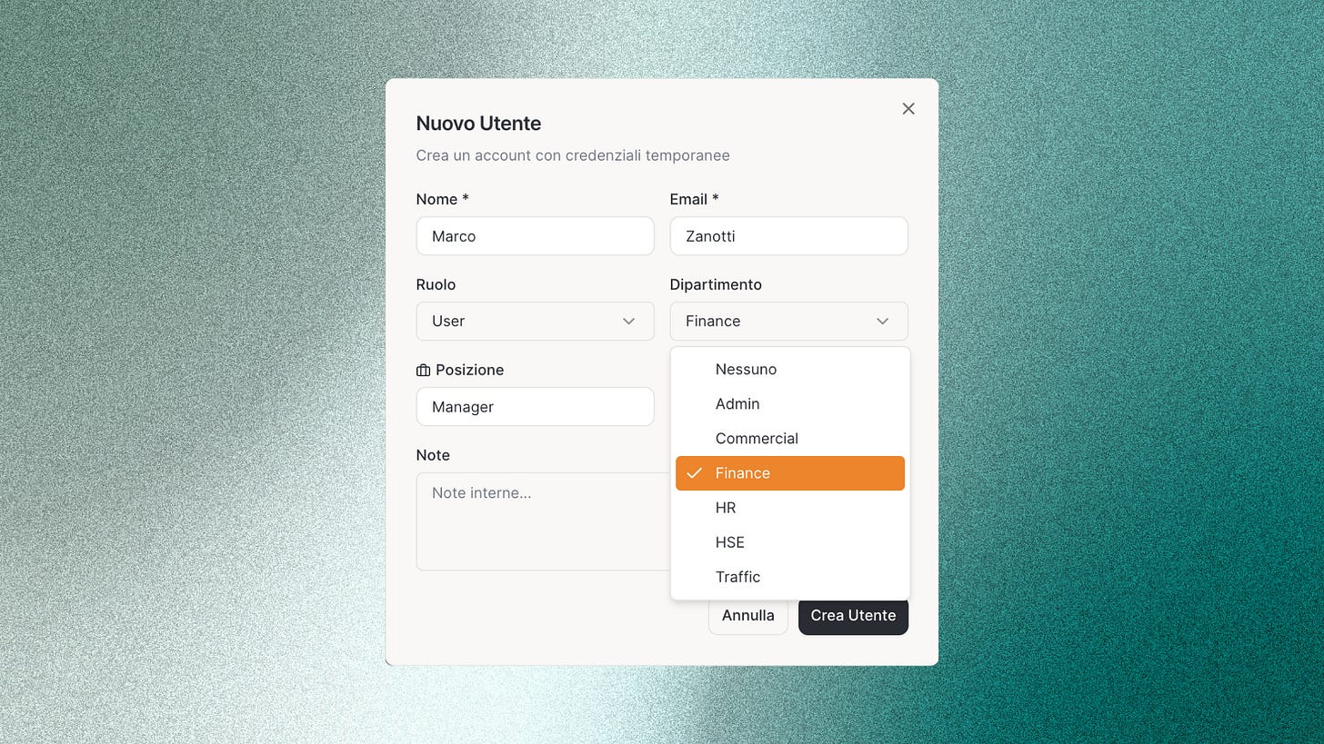 E la sensazione è incredibile: parli con lui, descrivi il problema del CLM, e vedi l’interfaccia prendere forma in tempo reale. Ho passato qualche sera a rifinire la struttura: una dashboard che non ti mostra file, ma impegni e scadenze. Una sezione che ti mostra le tue task in base al tuo dipartimento o ufficio.